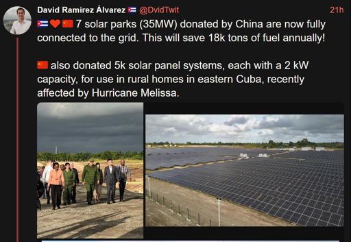 edit from real source https://en.granma.cu/mundo/2025-11-13/chinas-cooperation-with-cuba-in-the-energy-sector-remains-strong-and-steady